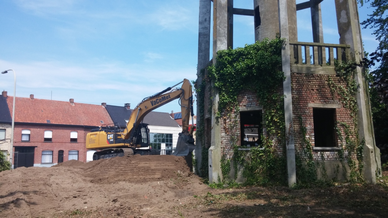 Intussen zijn de voorbereidende werken volop bezig. Struiken en bomen werden al verwijderd, en er wordt aarde aangevoerd om de afbraak logistiek mogelijk te maken.