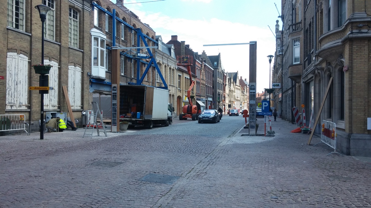 Ieper – In de zomer van 2015 kreeg de Rijselstraat in Ieper een opvallend kunstwerk: de HemelpOOrt van kunstenaar Honoré d’O. Twee houten constructies met metalen armen vormen er samen een poëtische toegang tot de hemel – en tot de verbeelding van de Sint-Pieterswijk.