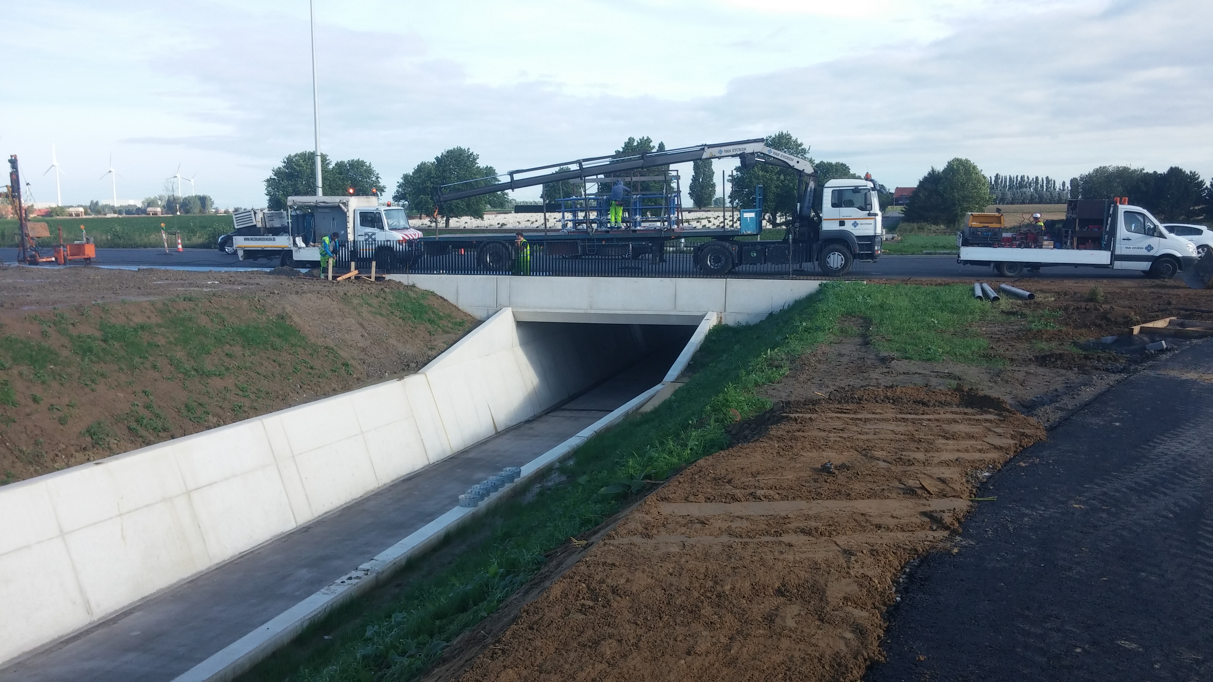 In een eerste fase werd de noordkant van de tunnel aangelegd. Na de graafwerken, het aanleggen van de betonnen vloerplaat, -muren en –dakplaat werd de weg in asfalt terug aangelegd. Onder de tunnel bevindt zich een ruimte die regenwater opvangt en die via een pomp wordt afgevoerd.