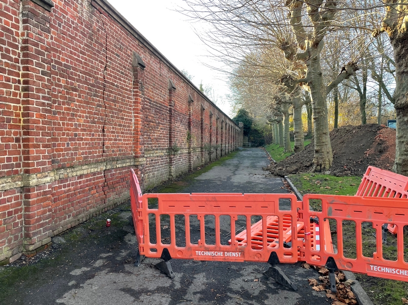In de muur van het oude zwembad zit een grote scheur, precies op de plaats waar de vestingmuur een hoek vormt tussen de Kasteelgracht en de Wieltjesgracht. De locatie van de schade bevestigt het historische tracé dat archeologen nu verder in kaart brengen.