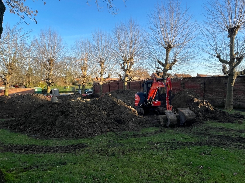 In de groenzone bij het vroegere openluchtzwembad en de rotonde aan de Hoge Wieltjesgracht werden afgelopen week proefsleuven gegraven om een verdwenen deel van de Ieperse vestingen op te sporen. Het onderzoek kadert in een herwaarderingsproject voor de site. De Vlaamse overheid ondersteunt het vooronderzoek met een premie.
