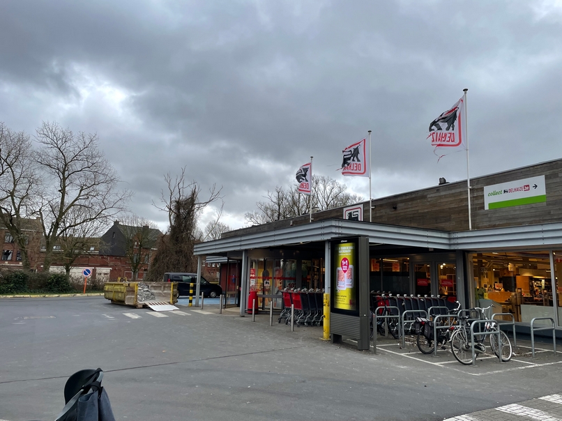In de Delhaize zijn de voorbereidende werken al enkele weken aan de gang: de beenhouwerij verdween achter een zwart zeil, de koelcellen werden gedemonteerd, de plafonds en de wandbekleding werd afgebroken. Ondertussen bleef de winkel gewoon open, maar de rekken werden alsmaar leger.