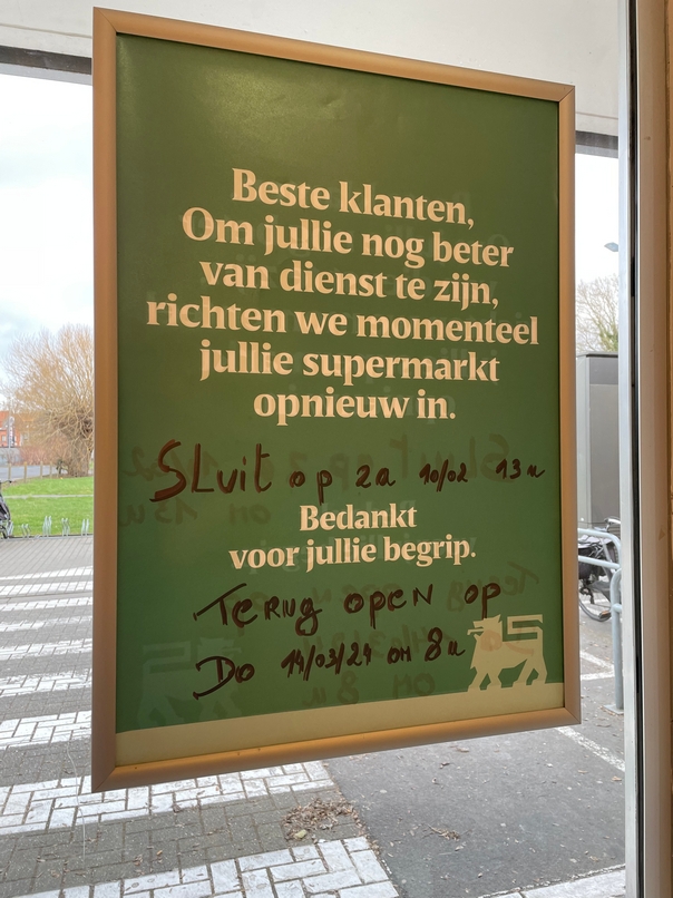 De vernieuwingswerken steken een tandje bij en daarom gaat de winkel dicht voor meer dan een maand vanaf zaterdag 10/02 om 13u.
