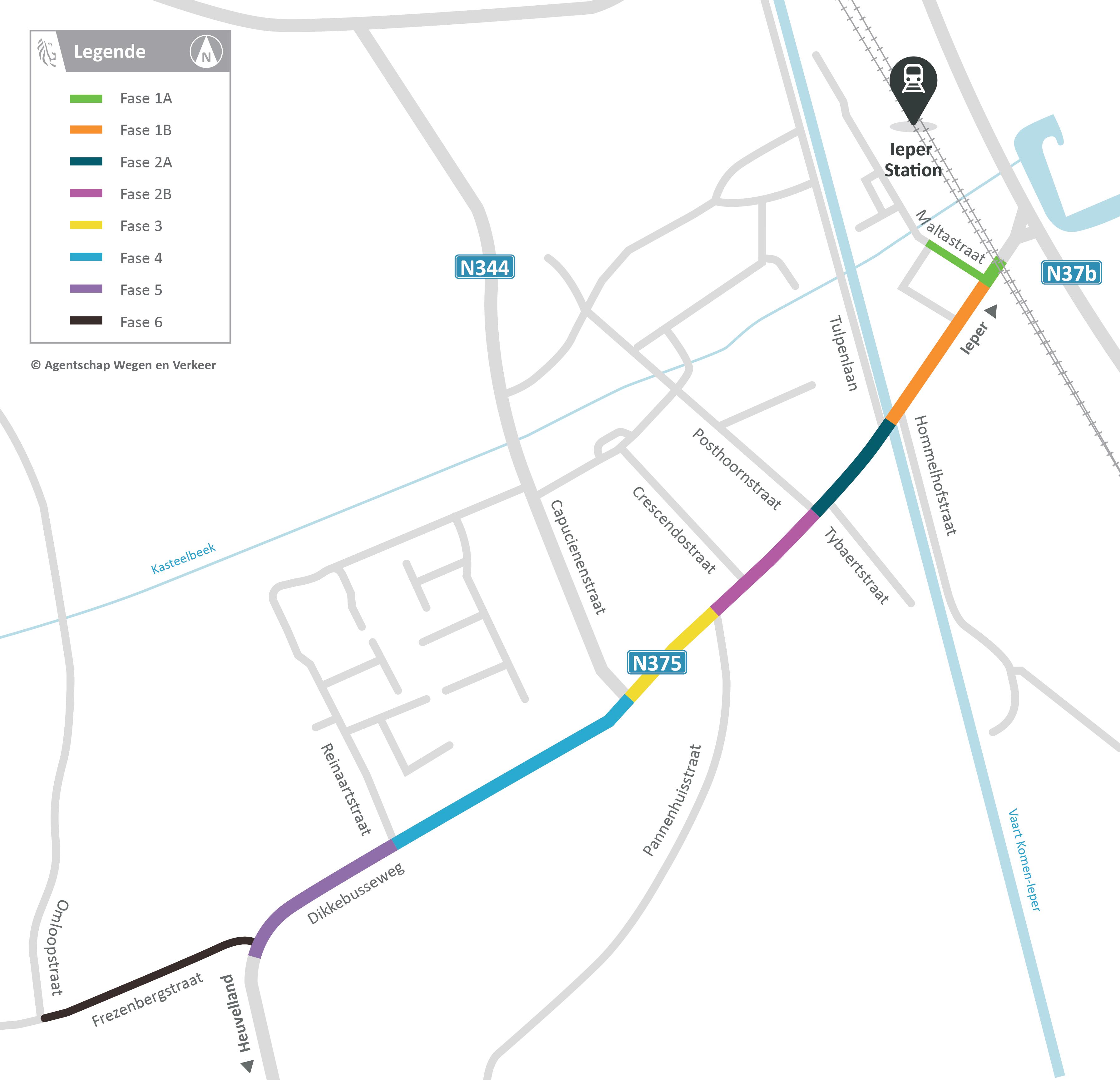 • Doorgaand verkeer rijdt om via de Oudstrijderslaan (N37b), de Rijselseweg (N336), de Kemmelseweg (N331) en de Ruuschaartstraat (N381).