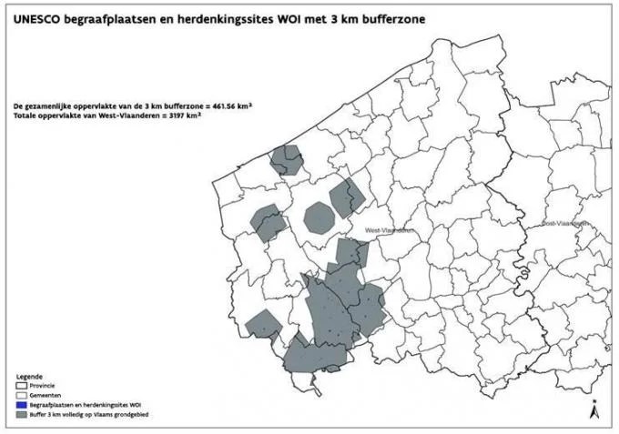Vlaams minister van Omgeving Zuhal Demir (N-VA) keurde onlangs nog de omstreden Vredesmolens in Ieper af en stelt nu een perimeter in van 3 kilometer rond erkende sites van WOI in de Westhoek waar voorlopig geen windmolens meer komen. Het betreft 27 sites die door UNESCO in 2023 zijn erkend als werelderfgoed. Het gaat onder meer over het Tyne Cot Cemetery van het Britse Gemenebest in Zonnebeke of de Duitse begraafplaats in Langemark, maar ook om de crypte van de IJzertoren waar de Vlaamse gesneuvelden aan het IJzerfront worden herdacht.