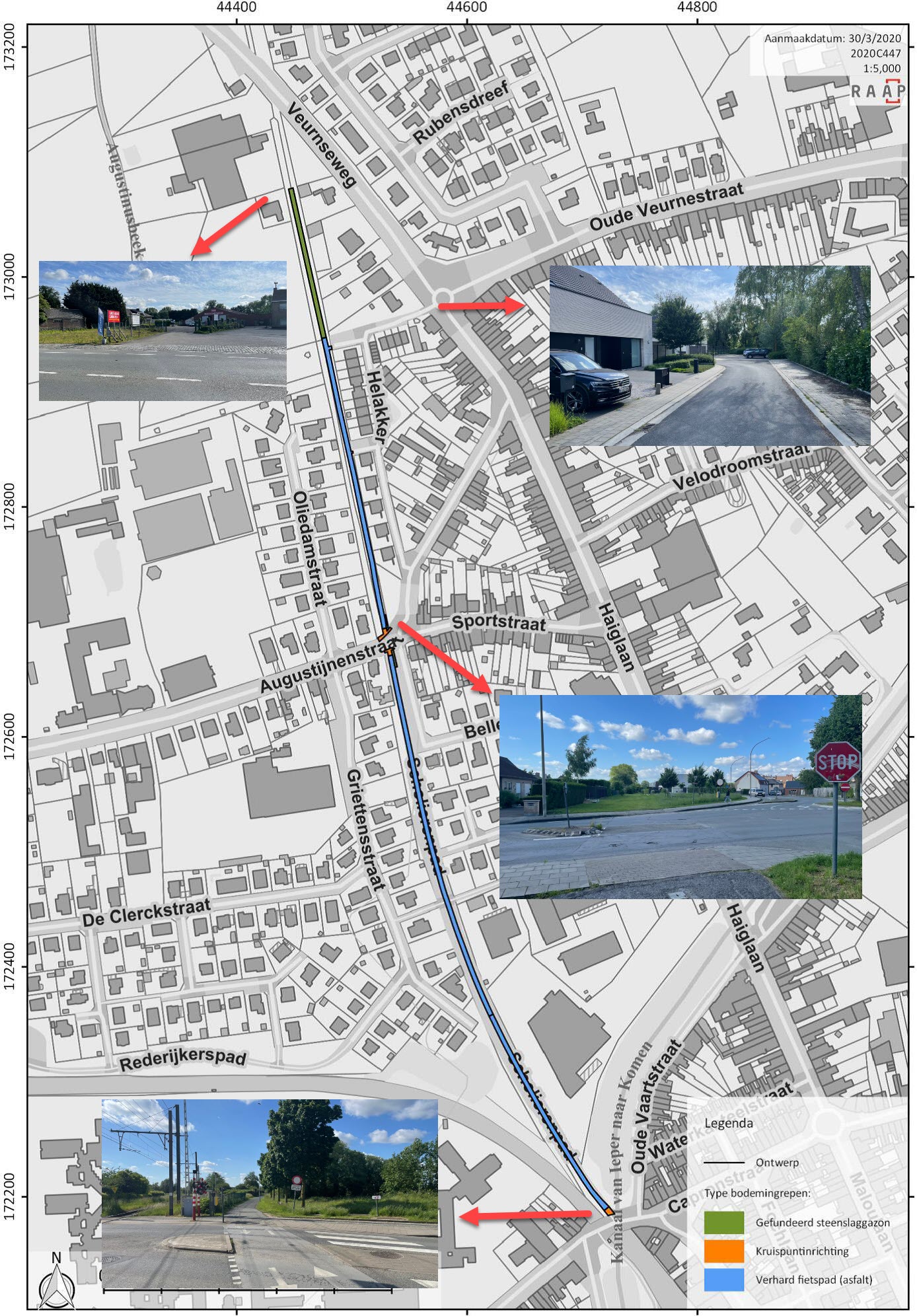 Het nieuw aan te leggen fietspad nabij Helakker gezien vanaf de Augustijnenstraat © Geert Dewaele