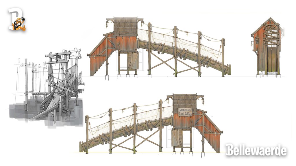 Het is een houten attractie die rondom het “schiereiland” van de zone Canada wordt geplaatst in het water. Voor het stabiliseren van de attractie in de grond wordt geen beton gebruikt, de houten palen worden in de ondergrond van de vijver geplaatst (ingeheide palen).