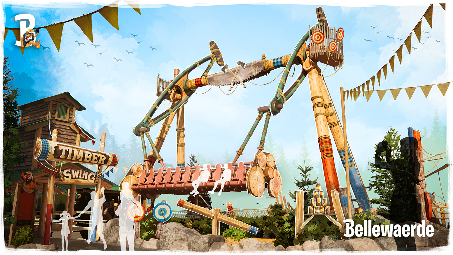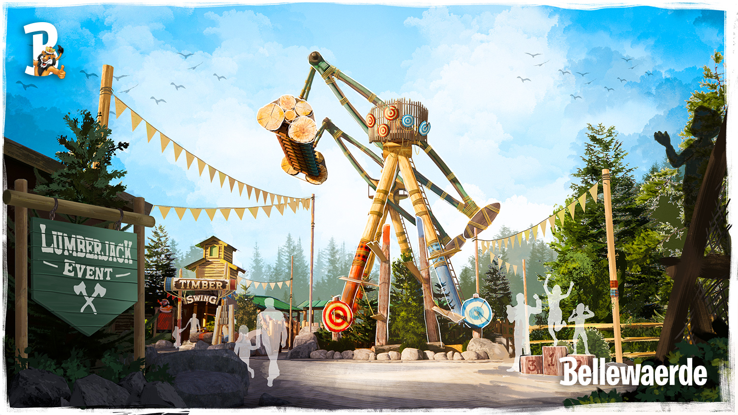 Een andere grote blikvanger is de WILD SWING XL, een spectaculaire, op maat ontworpen schommelattractie. De attractie telt 24 zitplaatsen en wordt gepresenteerd als de grootste schommel van zijn soort ter wereld. In de vorm van een Canadese zagerijmachine zweven bezoekers boven het water – een belevenis die past binnen het avontuurlijke karakter van de zone.