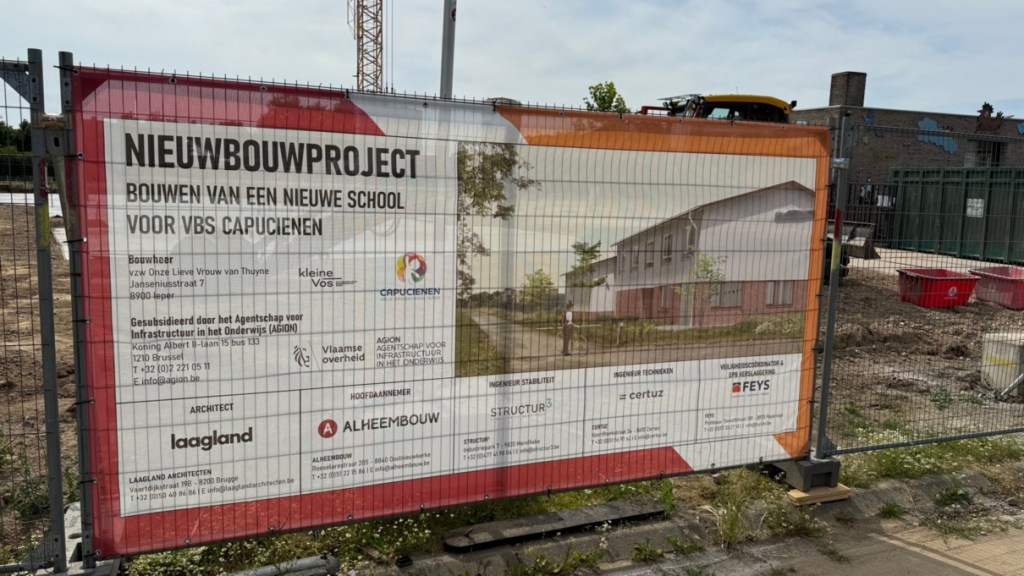 | Bronnen: Nws, V. (20 juni 2025). Basisschool Capucienen in Ieper start met nieuwbouw na bijna 20 jaar in containers gewerkt te hebben | VRT NWS: nieuws. VRTNWS. https://www.vrt.be/vrtnws/nl/2025/06/20/nieuwbouw-basisschool-capucienen-ieper/ Pattyn, T., & Pattyn, T. (20 juni 2025). Liefst 450 kinderen signeren betonplaat nieuwe school: “Een mijlpaal voor ons.” Het Nieuwsblad. https://www.nieuwsblad.be/cnt/dmf20250620_93859928 |