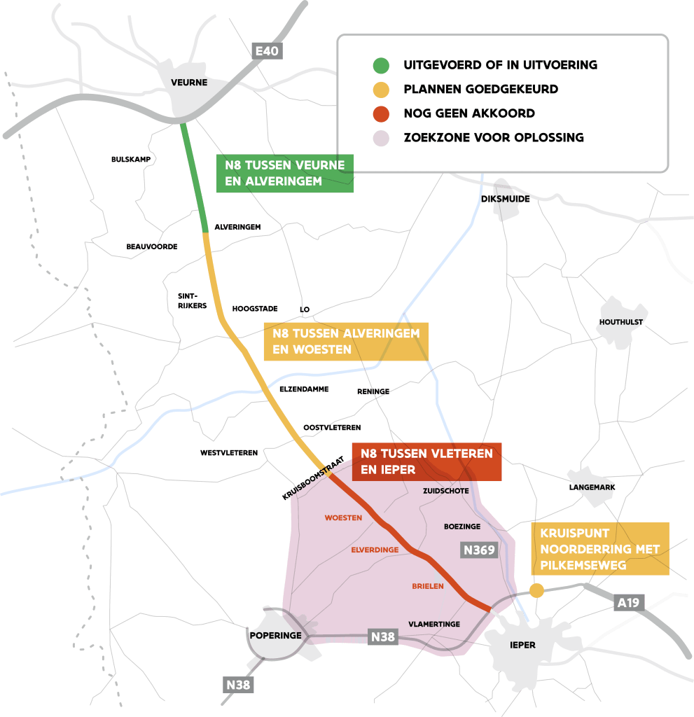 | Bron: Bewoners denken mee over toekomst N8 tussen Vleteren en Ieper | Wegen en verkeer. (28 augustus 2025). https://wegenenverkeer.be/nieuws/bewoners-denken-mee-over-toekomst-n8-tussen-vleteren-en-ieper |