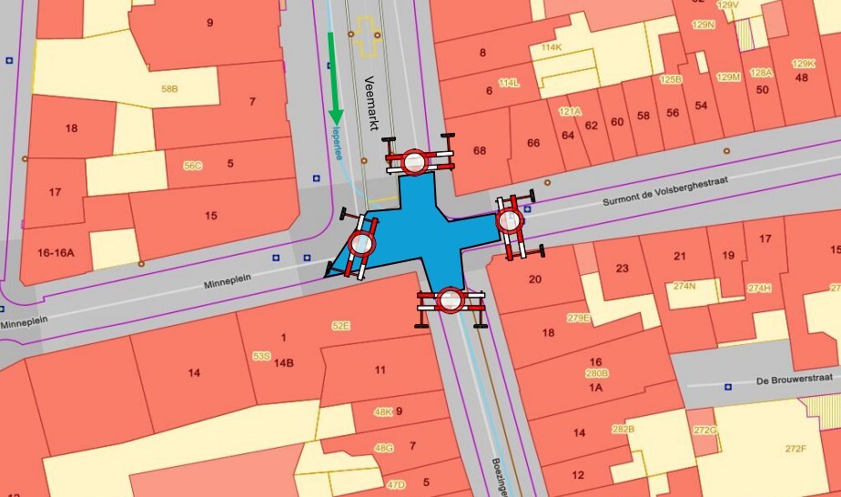 - De Surmont de Volsberghestraat, Boezingepoortstraat en het Minneplein worden doodlopend.