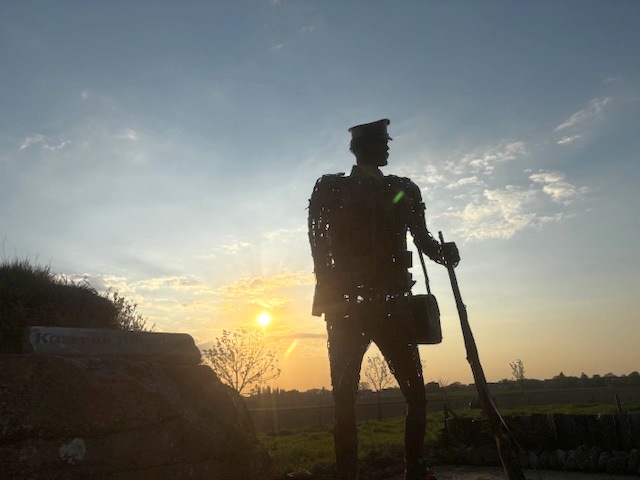Het zes en een halve meter hoge beeld stelt een soldaat voor en werd vervaardigd uit gerecycleerd metaal. Het werk is een creatie van de Britse kunstenares Jo Oliver en maakt deel uit van een bredere herdenkingscontext rond de Eerste Wereldoorlog.