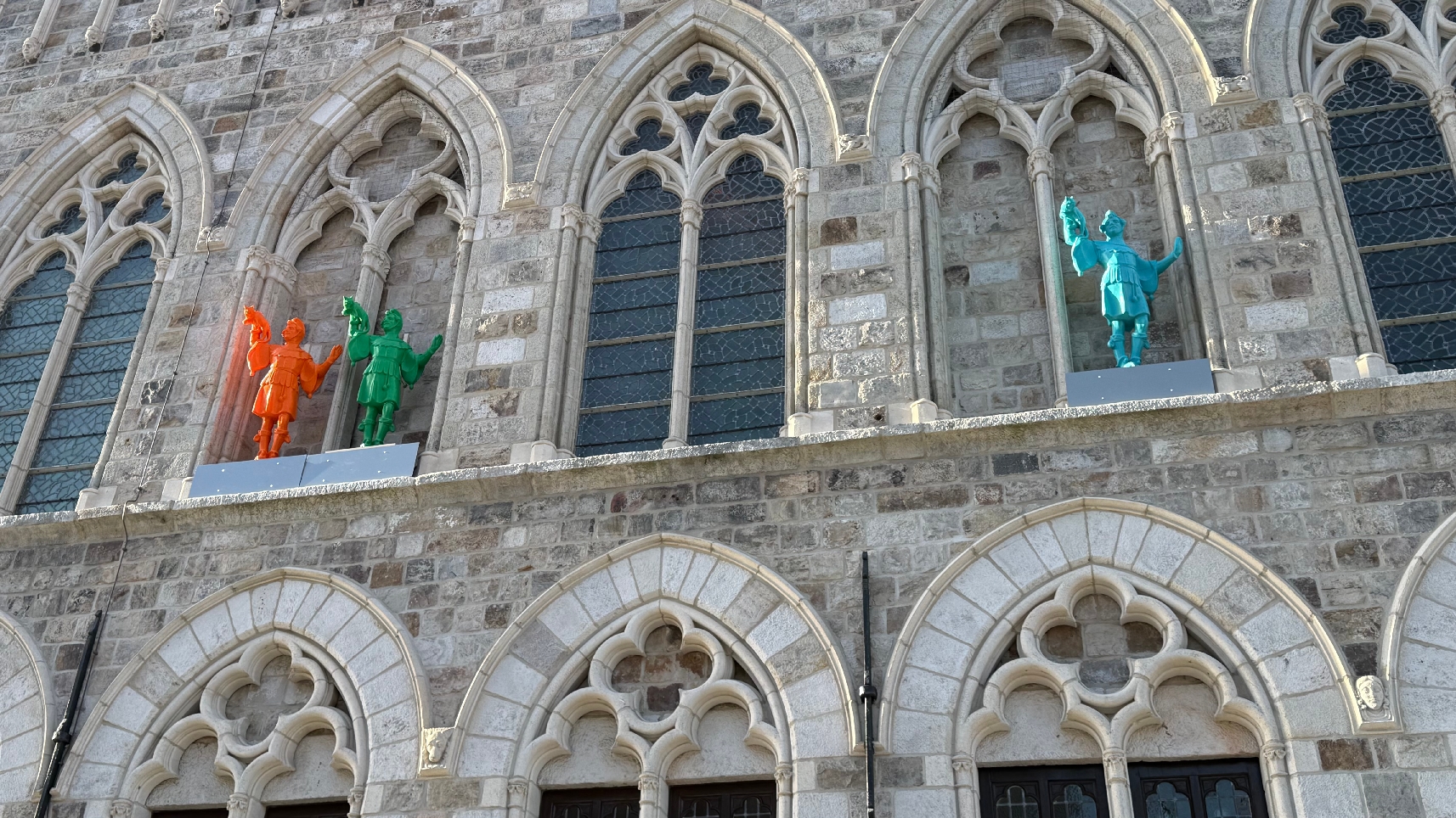 Kleurrijke narren verdwijnen uit gevel van Lakenhallen, maar stad voorziet nieuwe toekomst voor beelden
