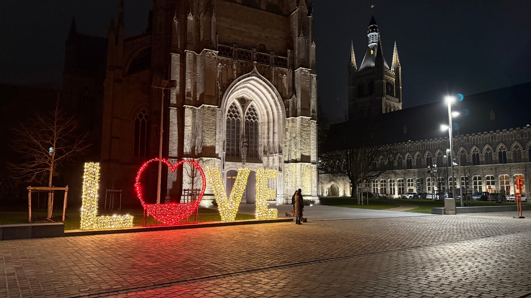 Een opvallend element is de fotobank met grote ‘LOVE’-letters, met op de achtergrond de kathedraal en de Lakenhallen. Die installatie moet bezoekers uitnodigen om langer te blijven en beelden te delen.